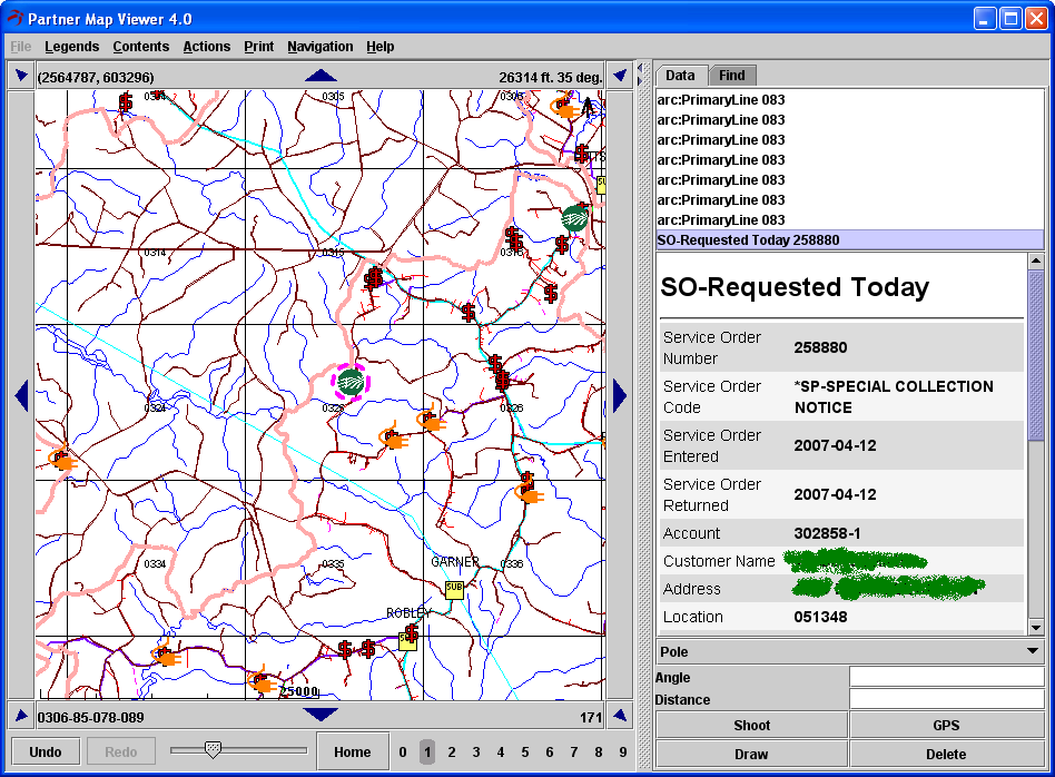 This is a sample of our Daffron mapset. This map shows all Service orders for Disconnects, Collections, Meter Changes and also any Service Order that is to be worked today.