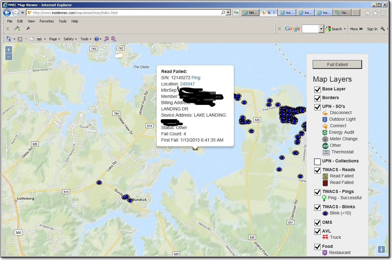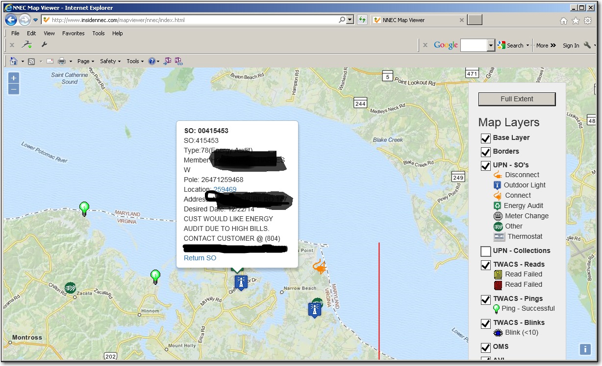 As you can tell, each icon is interactive, and can provide links to oter systems, such as looking up CIS, outage or AMR information using UPN-WEB, pinging/readingthe meter in TWACS, or sending information to a CSR so they can close a Service Order or Collection ticket. I added other stuff, such as restaurants, just to show thepossibilities if what we can ad to it.