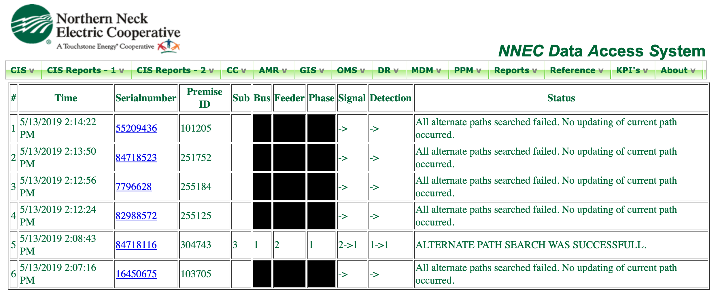 From that page, clicking on the serial number initiates a TCT ping on that meter.