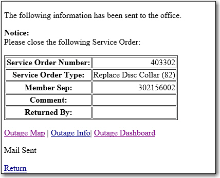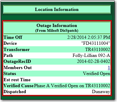 If the member is in a know outage, outage information, from DisSpatach would be displayed.