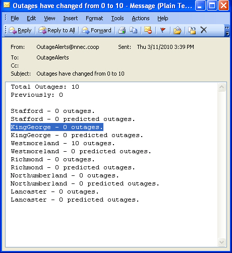 | Outage Alert Notification | No | Yes | No | Yes | Emailed to Duty Supervisors and Managers when outage count changes. The check is made every 4 minutes |