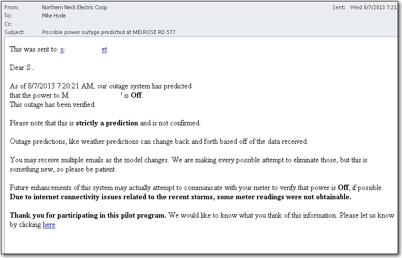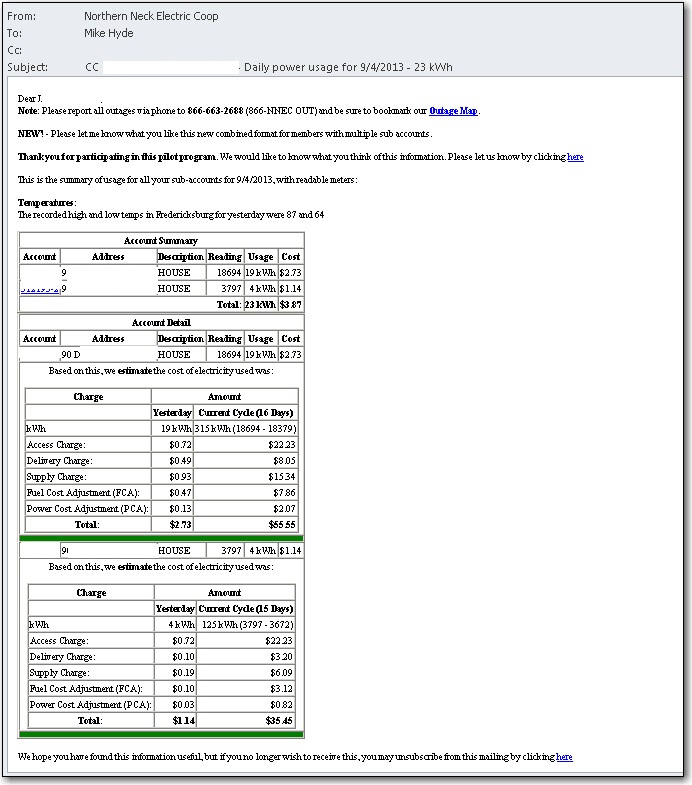 This is the email that gets sent to the members who have signed up to receive ther hourly usage.