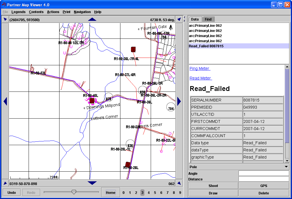This shows a meter that failed to read in the TWACS AMR system. It is indicated by a red book icon. From here, we can attempt to ping or reread the meter.
