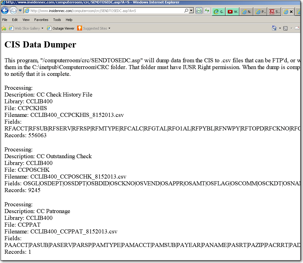 In going thru oour CIS conversion, I knew we would be sending files many times throughtout the process. The first time I did it manually thru Microsoft Access. That was a cumbersome process and I wanted something more "clicky."