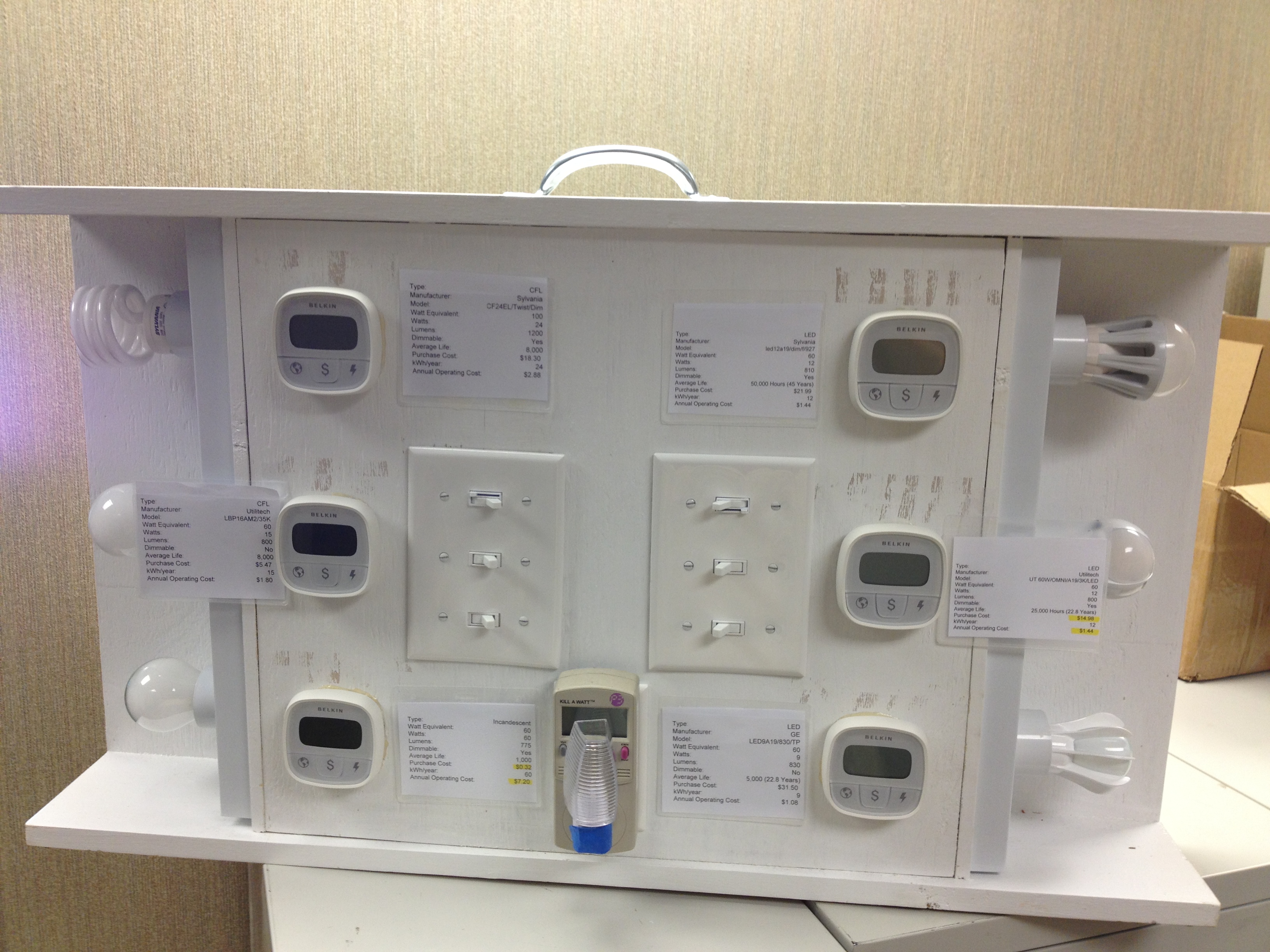 I liked the idea, and wanted to make one for our Annual Meeting. One thing that concerned me about the Touchstone Energy Display, was that all the bulbs had to be removed to transport it. I wanted something more "pick-up-and-go." Here is what I came up with: