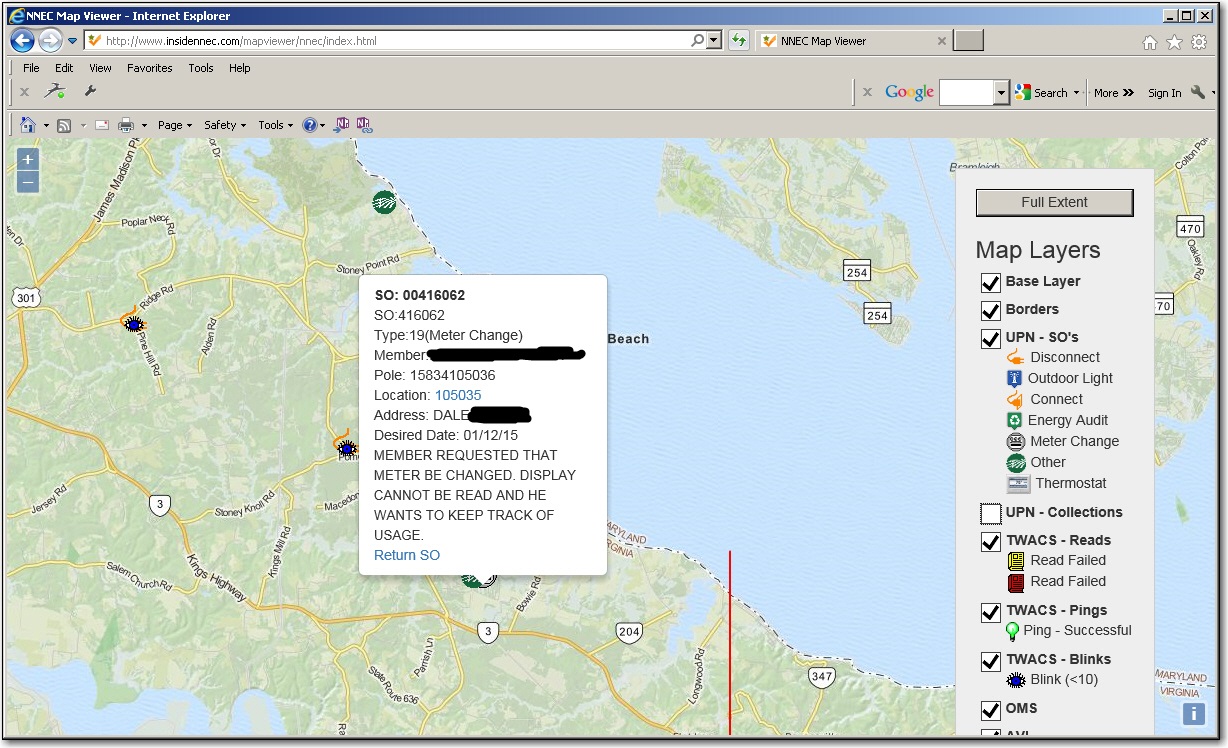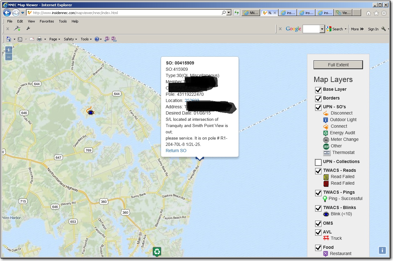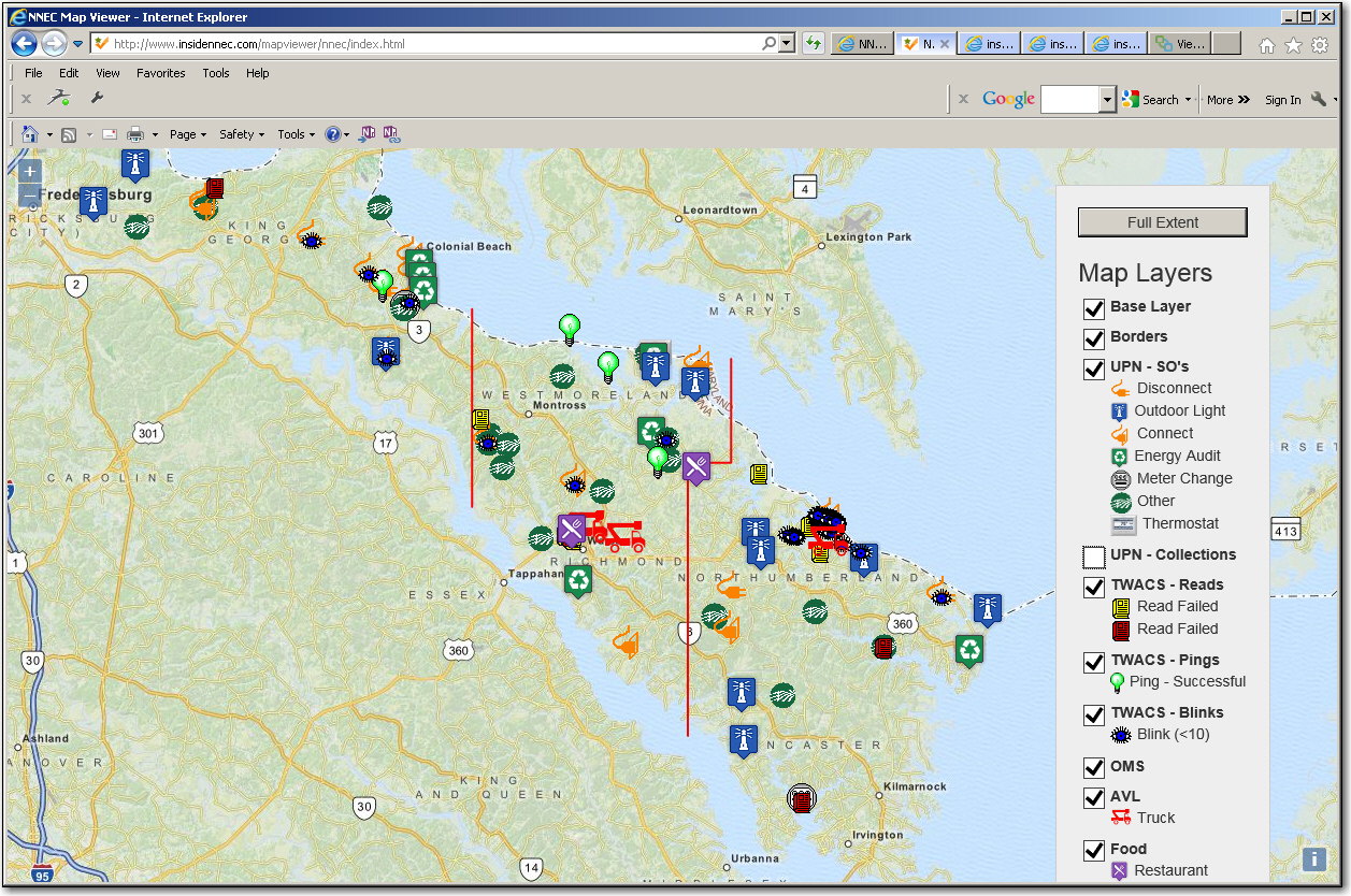As you can tell, each icon is interactive, and can provide links to oter systems, such as looking up CIS, outage or AMR information using UPN-WEB, pinging/readingthe meter in TWACS, or sending information to a CSR so they can close a Service Order or Collection ticket. I added other stuff, such as restaurants, just to show thepossibilities if what we can ad to it.