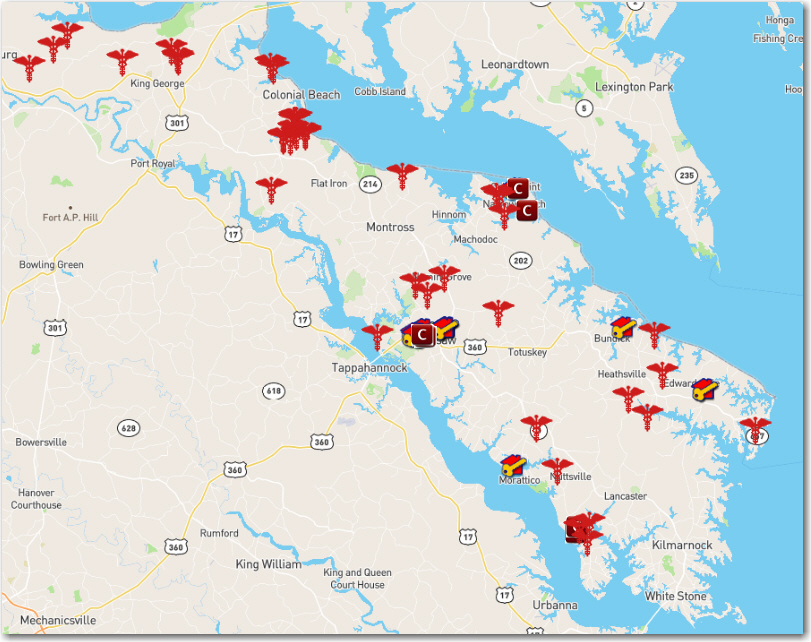 Here are some examples of the interactivity of the map.