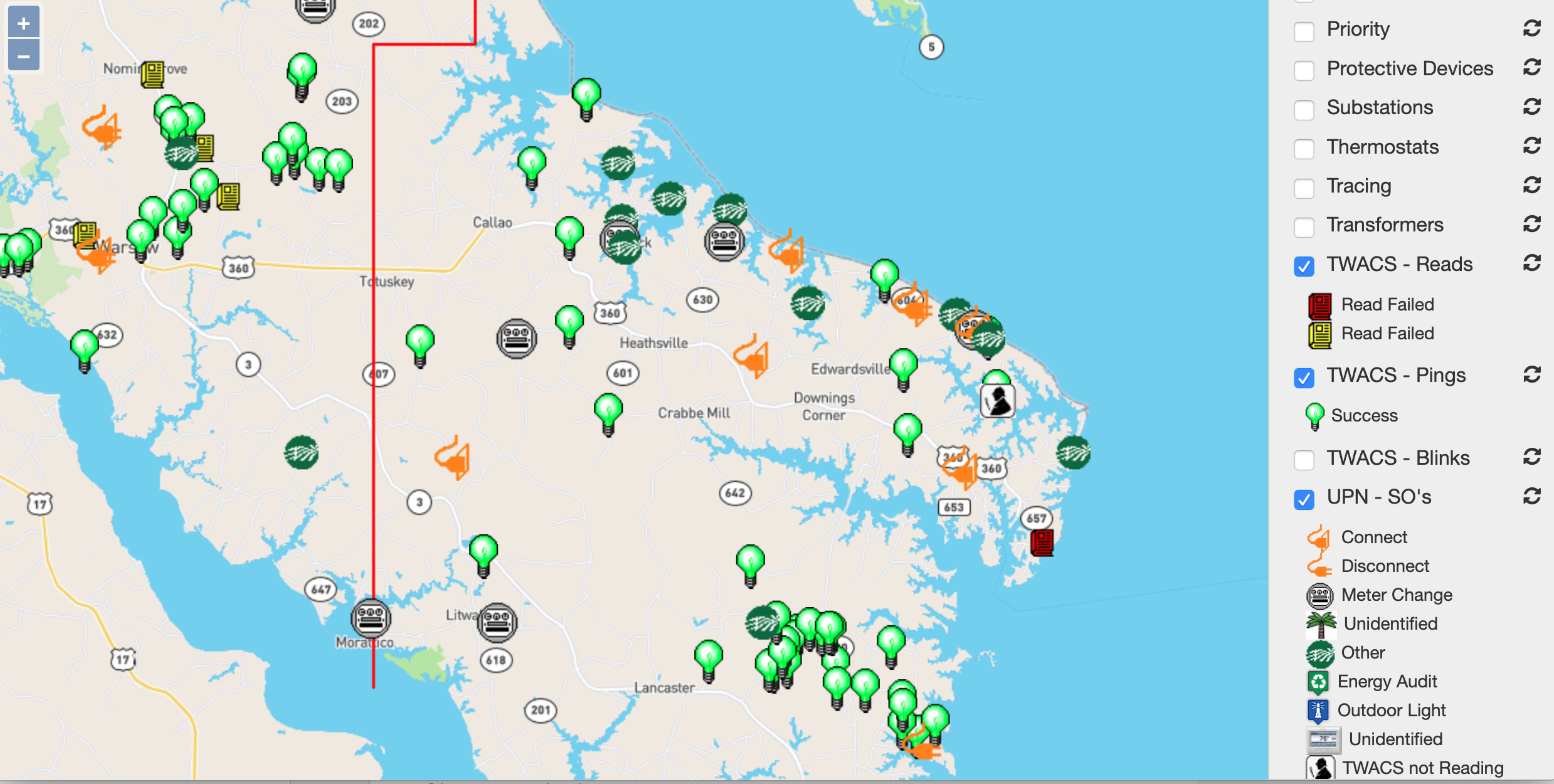 I also look at the failed pings, failed reads and current open Service orders on DAS Map.