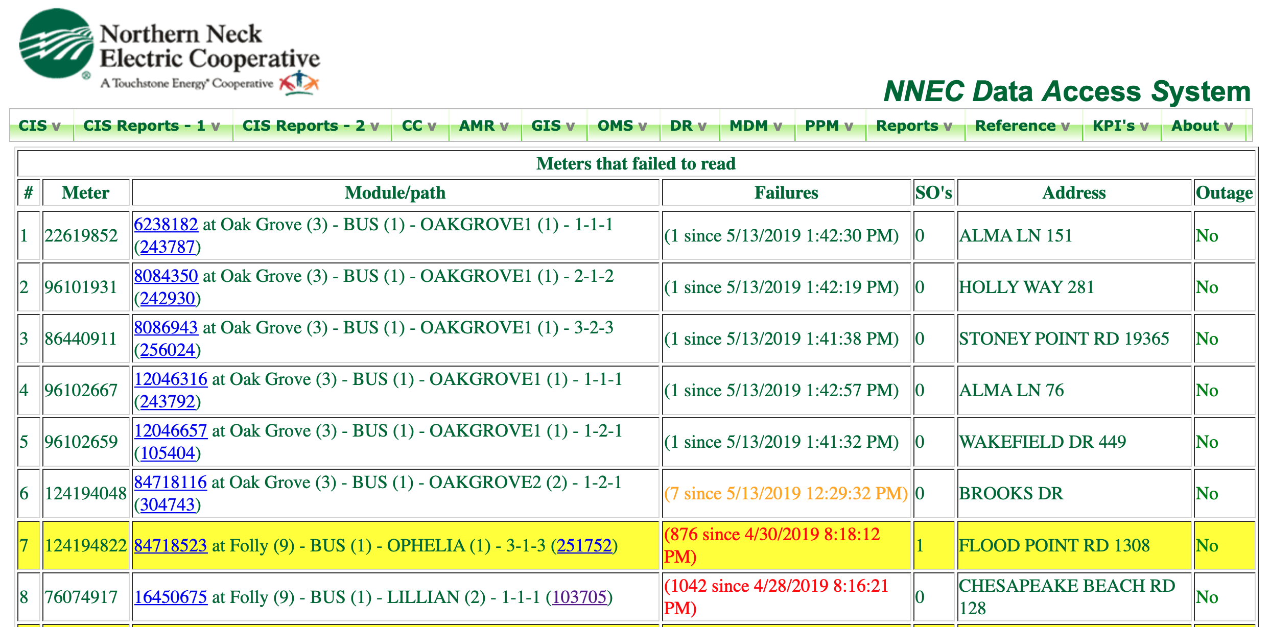This is a web page that sends out a read command to all meters in the AMRCOMMFAIL table.