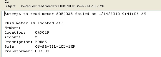| Failed Meter Read | Yes | No | Yes | Yes | Emailed to Operations and TNS Operators when a meter fails to read, when read using either the Map or web application.. |