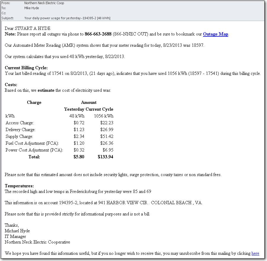 This is the email that gets sent to the members who have signed up to receive ther hourly usage.